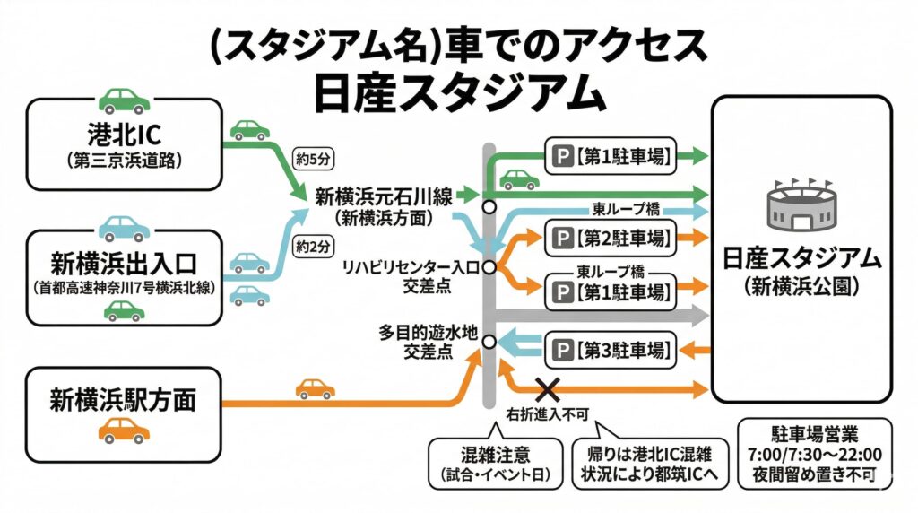 日産スタジアムへ車で向かう方法|出発前に知っておきたいアクセスと混雑のポイント