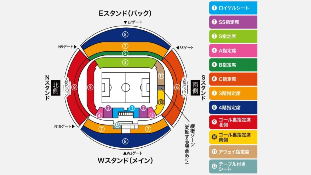 近さならメイン1階、全体の見やすさならバック側や上層、応援の熱さならゴール裏という流れで考えると、自分に合う席を見つけやすくなります。